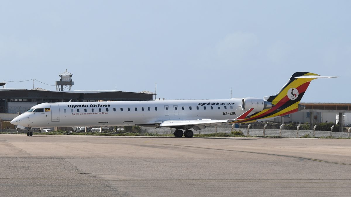 A Uganda Airlines Bombardier CRJ-900 taxi is pictured during its launching flight to Aden Abdulle International Airport in Mogadishu, Somalia on 29 August 2019. AMISOM Photo / Omar Abdisalan